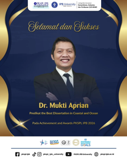 Penghargaan tersebut diberikan atas disertasi berjudul “Indeks Pergerakan Perikanan sebagai Transformasi Spasial Lintas Wilayah Pengelolaan Perikanan”. Capaian ini menjadi pengakuan atas kontribusi ilmiah Mukti Aprian dalam pengembangan riset tata kelola perikanan berbasis pendekatan spasial dan data.
